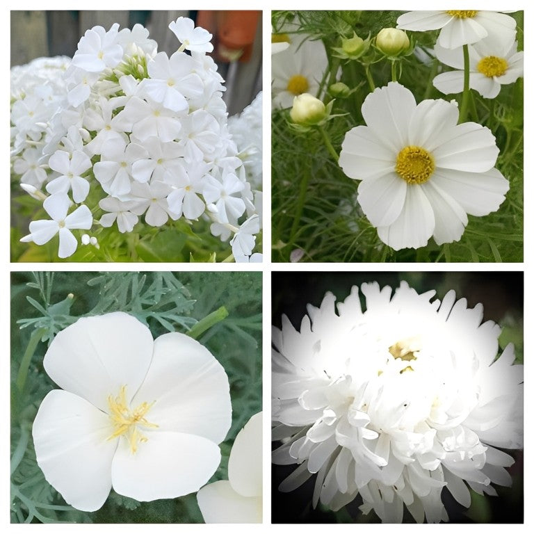 Het ‘Beter-in-een-Pot’ Pakket Wit bevat vijf soorten witbloeiende zomerbloeiers die het uitstekend doen in potten en bakken. Perfect voor wie weinig ruimte heeft, maar toch wil genieten van een weelderige bloemenzee. De mix zorgt voor een frisse, elegante uitstraling – van subtiel tot stralend wit – en trekt bovendien bijen en vlinders aan. Bevat Phlox, callistephus, clarkia, cosmea en Godetia.