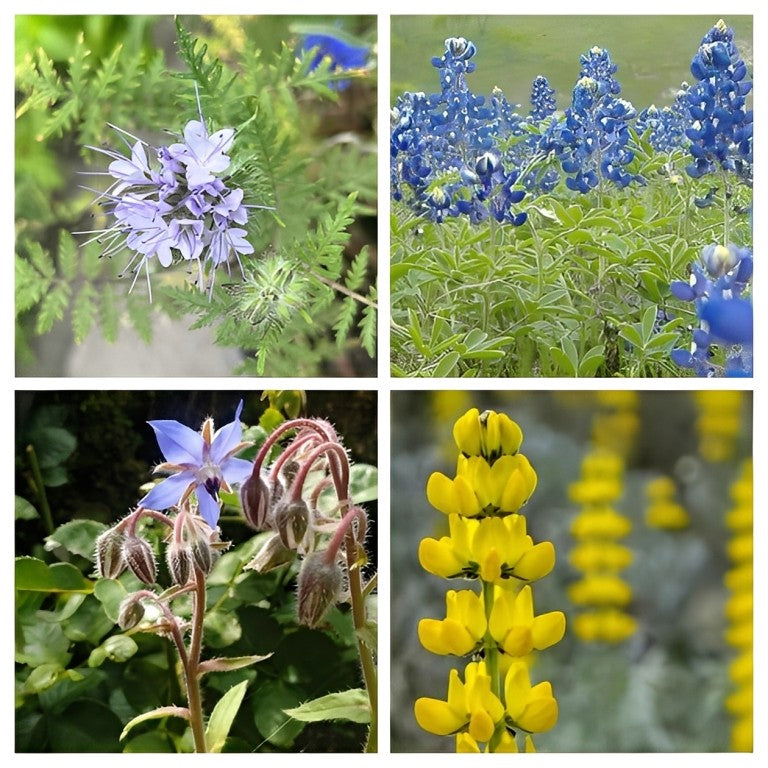 Soorten zoals éénjarige lupines, wikke, phacelia en klaver (en nog vele andere) — gekozen om stikstof vast te leggen, structuur te verbeteren en bijen te voeden.