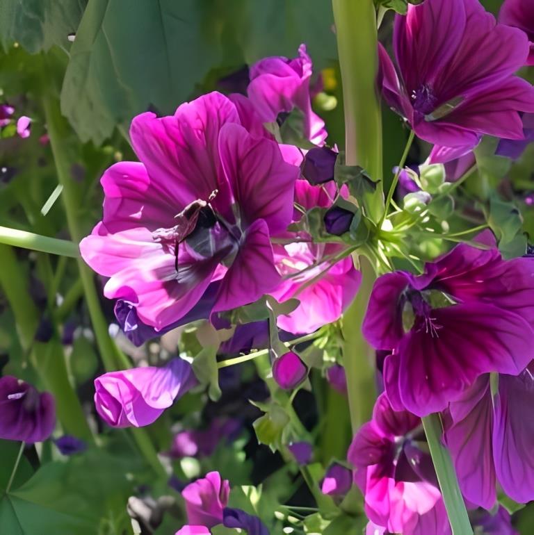 Het Groot kaasjeskruid ‘Mauritania’ is een prachtige, robuuste vaste plant met grote, purperroze bloemen met donkerpaarse aders. De bloei is lang en overvloedig, en de plant trekt bijen, hommels en vlinders van ver aan. Met zijn natuurlijke uitstraling past hij perfect in een wilde border, pluktuin of veldrand.