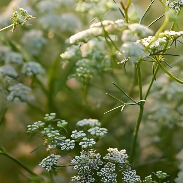 De Komijn (Cuminum cyminum) is een warmteminnend, éénjarig kruid met fijne, schermvormige bloei en een heerlijke, kruidige geur. De plant lijkt op venkel of dille, maar vormt na de bloei de bekende komijnzaadjes die gebruikt worden in gerechten over de hele wereld. Mooi in de kruidentuin, maar ook in de border tussen andere luchtige zomerkruiden.
