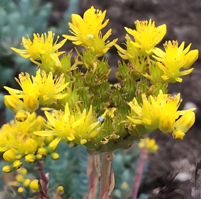 De Tripmadam (Sedum rupestre) is een inheemse, vaste vetplant met fijne naaldachtige blaadjes en gele bloemtrosjes in de zomer. Ze vormt dichte, kruipende kussens die uitstekend dienen als bodembedekker, rotstuinplant of dakbeplanting. Tripmadam is niet alleen prachtig, maar ook eetbaar: haar frisse, lichtzure blaadjes geven salades en gerechten een verrassende toets.