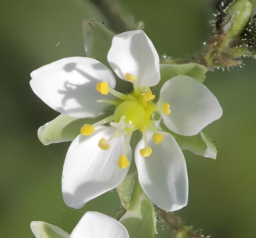 De Spurrie (Spergula arvensis) is een tere, inheemse eenjarige veldbloem met kleine witte sterbloempjes en sierlijk, naaldfijn blad. Ze bloeit langdurig en rijk, trekt bijen en andere insecten aan, en geeft borders, akkerranden of veldtuinen een natuurlijk, luchtig karakter. Door haar snelle groei is ze ook ideaal om kale plekken snel op te vullen.