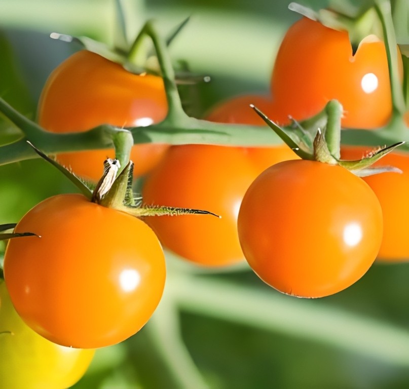 De ‘Sungold F1’ is een geliefde cherrytomaat met glanzende oranje vruchten en een uitzonderlijk zoete, aromatische smaak. De trossen hangen vol met sappige tomaatjes die barsten van zonnesmaak — perfect om direct van de plant te snoepen of in salades te gebruiken. Een sterke groeier met een lange oogstperiode.