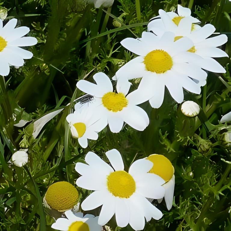 De Valse kamille (Anthemis arvensis) is een vrolijke, inheemse eenjarige met witte bloemblaadjes en een zonnig geel hart. Ze lijkt op de echte kamille, maar heeft een wat robuustere uitstraling en een heerlijk veldachtig karakter. Perfect voor natuurlijke borders, akkerranden en bloemrijke tuinen waar bijen, vlinders en andere bestuivers zich thuis voelen.